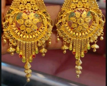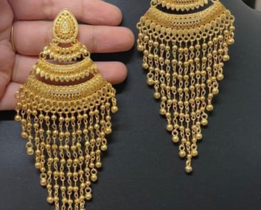 Explore our dazzling collection of gold earrings, from timeless studs to intricate traditional designs, crafted to suit every style and occasion.